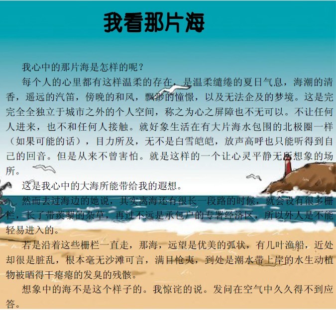 日期:2016-12-28 14:40:33 作者:【文學(xué)作品】我看那片海──財(cái)務(wù)部 施凱敏-江蘇海宏建設(shè)工程有限公司
