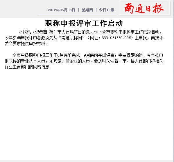 日期:2017-03-17 16:33:27 作者:南通日報《職稱申報工作啟動》-江蘇海宏建設工程有限公司